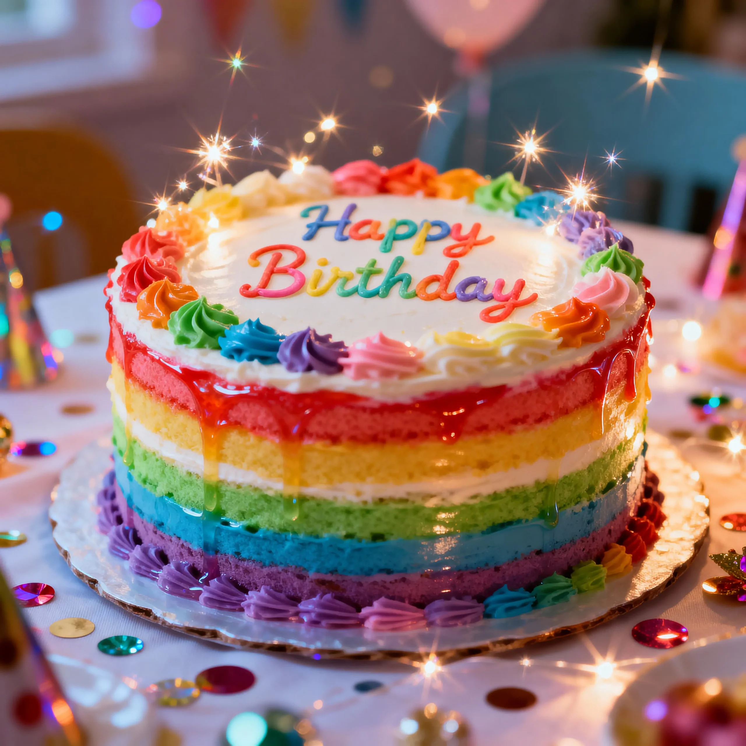 A rainbow birthday cake tastes best at room temperature. Let it sit out for about thirty minutes before serving. This allows the frosting to soften and enhances the overall flavor.